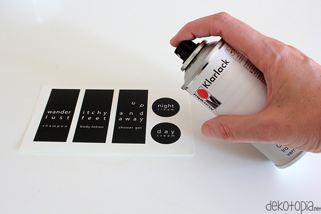 Im Drogeriemarkt gibt es das ganze Jahr über Reiseflaschen. Die sind zwar auch aus Plastik, aber wenn man sie immer wieder verwendet, hat man so auch ein wenig Plastikmüll gespart. Und ganz ehrlich: Glasflaschen herumzuschleppen wird mir auch einfach zu schwer. Mit selbst gestalteten Reiseetiketten könnt ihr eure Flaschen auch ganz hübsch aussehen lassen. Und falls ihr keine Zeit oder Lust habt, selbst Etiketten zu entwerfen, könnt ihr meine einfach gratis herunterladen.